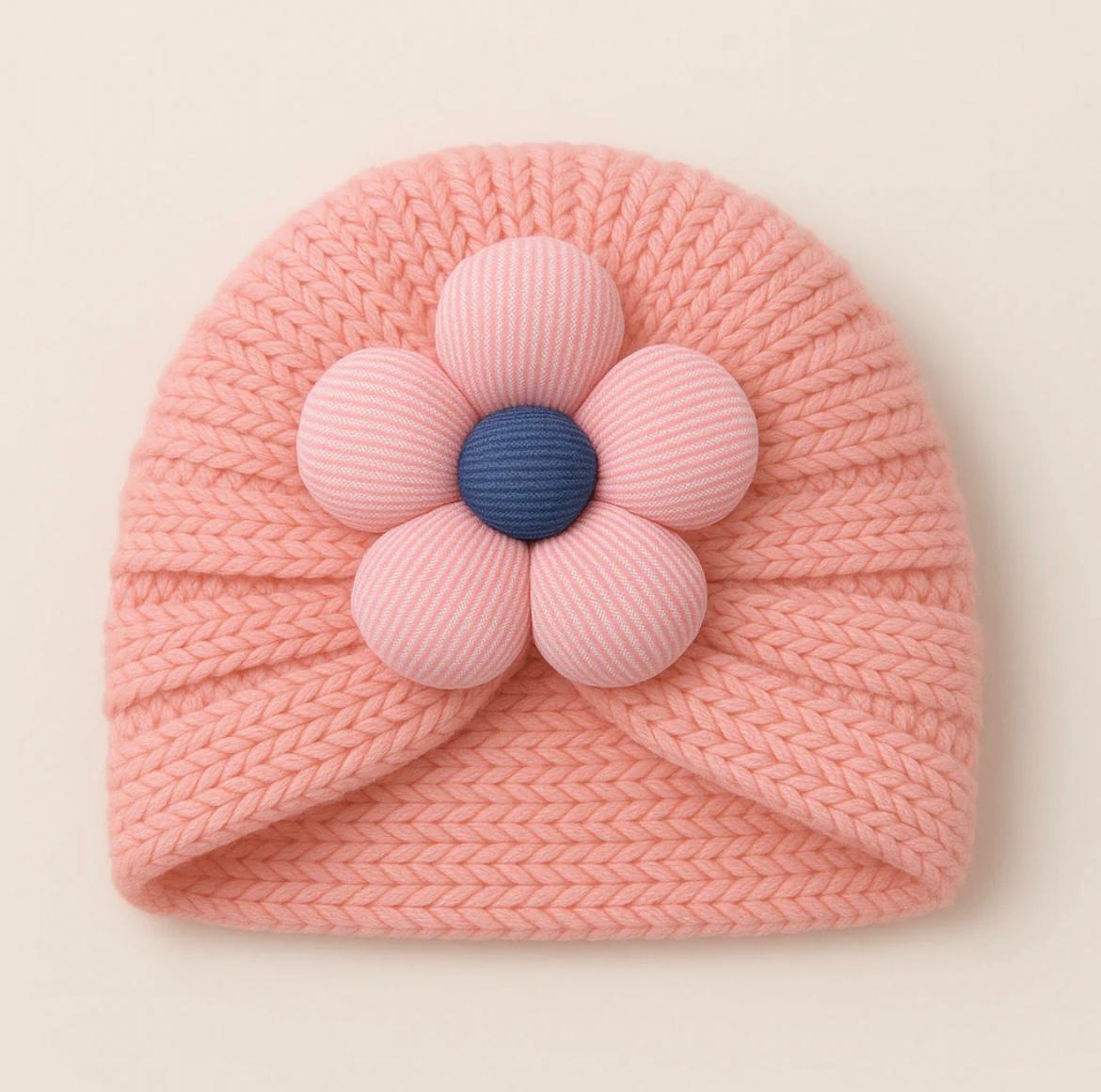 Baby Woolen Turban Cap Flower Grey includes 1 x Cap for cozy everyday wear. This set includes 1 x Cap. plush wool-blend knit with gentle stretch, flower accent detail, clean finishing holds the cap shape, layered flower adds a sweet highlight, shaped crown keeps the turban silhouette, pull-on design keeps dressing fuss-free, breathable stitching balances warmth during outings, lightweight feel helps reduce fuss outside.